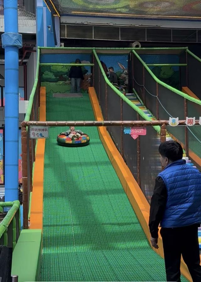 5分 超棒孩子们玩得很开心,价格实惠,一票到底。里面温度也适宜,工作人员都比较耐心。小年夜去的,人不多。需要提醒下,户外还有3个项目:小火车、漂流、旋转木马。我们是听到广播3点半户外项目关闭,才知道还有户外的。