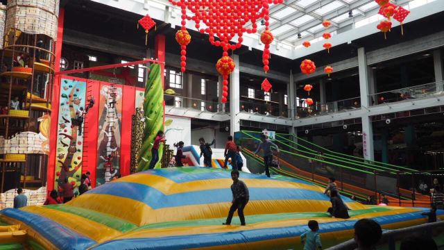 5分 超棒携程订的一大一小152,看到这个价格我是有点抗拒的,去了后发现还是蛮值,不同于商场里一个几层城堡的7-80那种.里面很大,划船.卡丁车.碰碰车.攀岩.蹦床.积木应有尽有。小球城堡都有两个人还有发射器,运输管道反正很先进,小孩玩的很开心,11点到下午3点半。还不愿意走