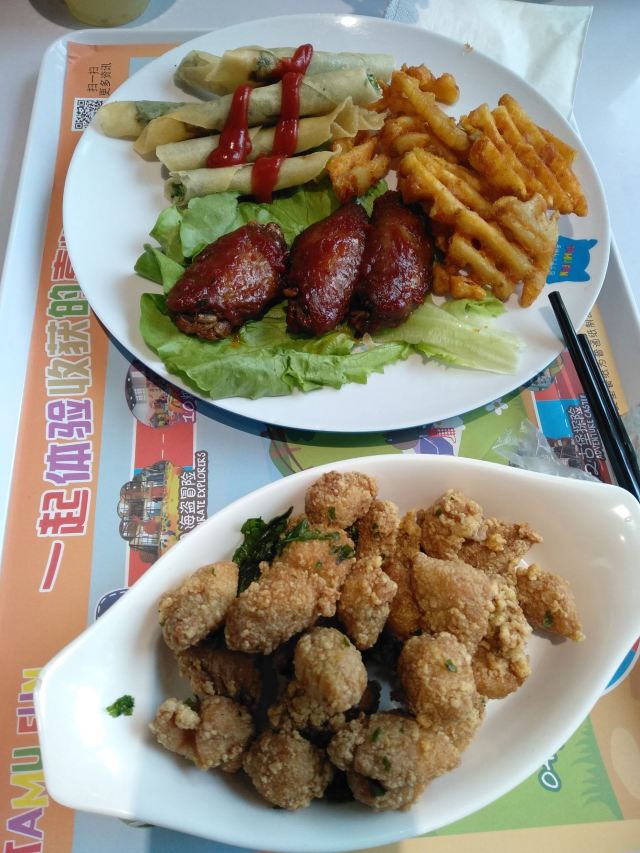 中间吃了饭,在餐厅点了63元东西,加上送的盐酥鸡,没吃饱...