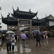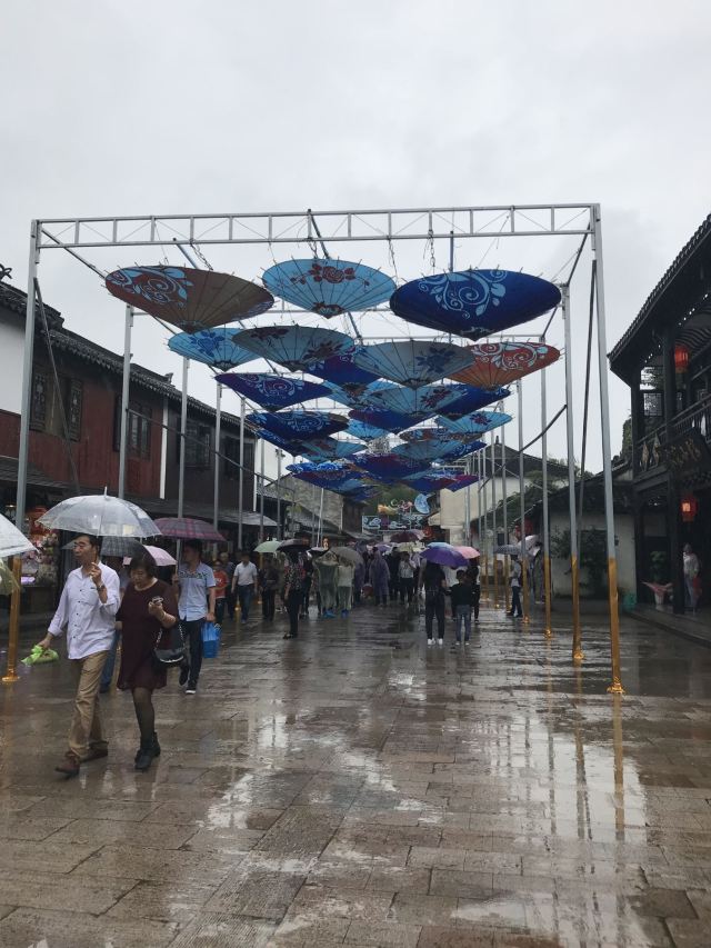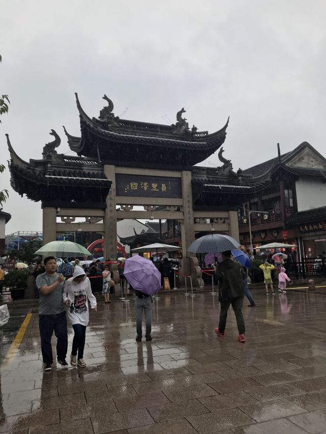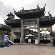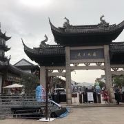 牌楼塔影指周庄古牌楼和其西北边的全福塔,古牌楼其实是周庄古镇景区的出入口之一,为仿古建筑,四根花岗石柱子支撑起木质斗拱和重檐翘脊的盖顶,气势非凡,与高33米、五层六角的仿古宝塔全福塔相映成趣。
