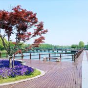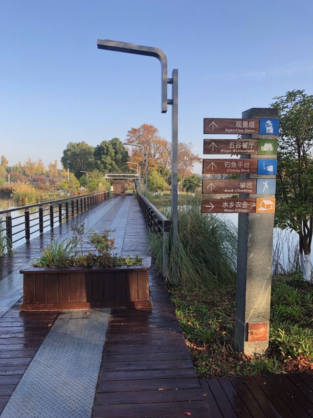 一众小道。水域面积占1/2,N条小道串联起了点缀其间的近10个小岛。或笔直的木质步道、或婉延的石质小径,左拐右转,移步易景,满目青绿,心旷神怡。