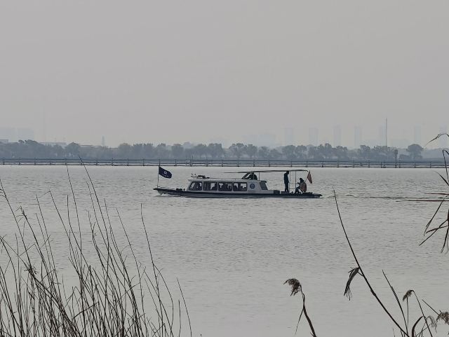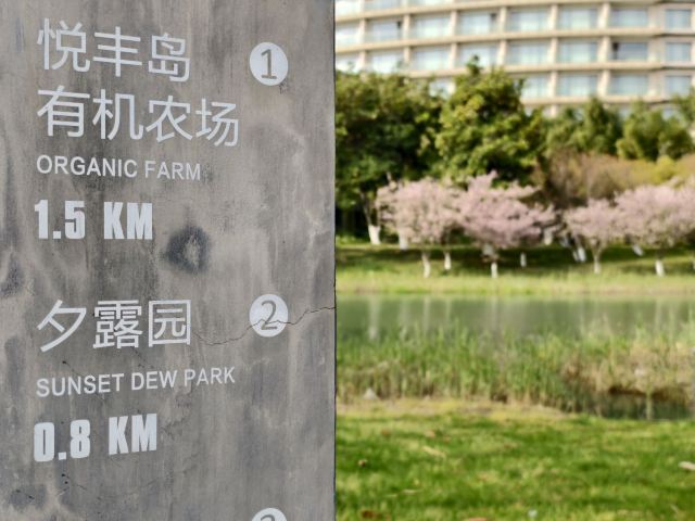 4分 满意住在昆山阳澄湖费尔蒙酒店,早上起来在湖边漫步,发现其北部有个很大的“夕露园”。建在阳澄湖的东岸,便去好好地逛了一圈。