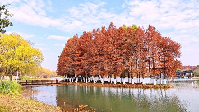 5分 超棒人少、景美、免费,是苏州观落羽杉的胜地。目前只能自驾前往,没有公共交通。