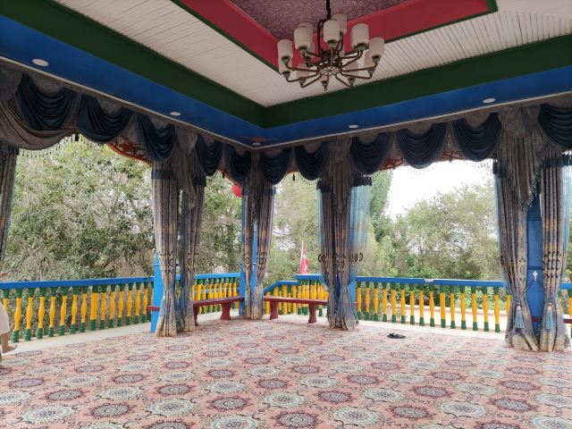 微信小程序库车王府位于新疆阿克苏地区库车县老城区内,是从1759年起库车当地的维吾尔亲王库车王世代居住的地方。曾经的库车王府已经变为废墟,如今的王府是在原址基础上,按照后一代库车王达吾提·买合苏提的回忆原样复原的。库车王府面积很大,横竖都有两三百米左右,里面有多座建筑,建筑多为维吾尔风格,内部色彩鲜艳,可以随处拍拍照片,院子里还有花园、绿地,环境十分不错。王府参观分为龟兹文化展览区、王府参观区和老城墙三处,进入后步行参观即可,一般2小时左右为宜。