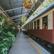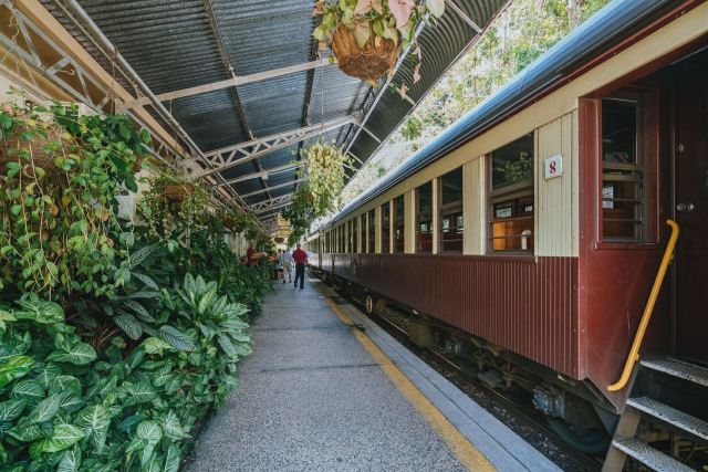 到凯恩斯一定要体验了闻名于世的往返于凯恩斯和库兰达小镇的百年小火车(Kuranda Railway),乘坐着复古小火车路过多个壮观的瀑布,穿过风景如画的雨林,途径15个隧道,大约一个半小时左右后抵达库兰达小镇。