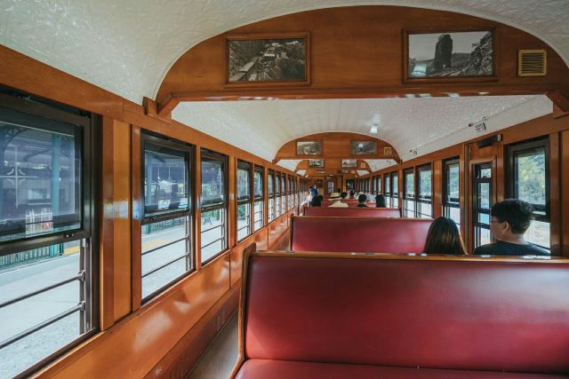 木质的车厢内饰、宽敞的皮质座椅,使原本平淡无奇的列车增添了几分古典气息。