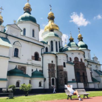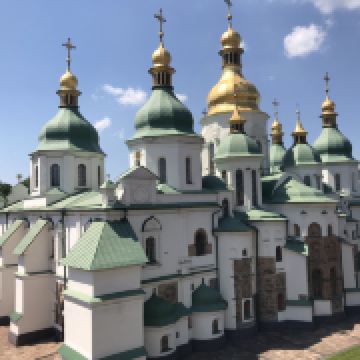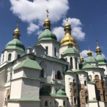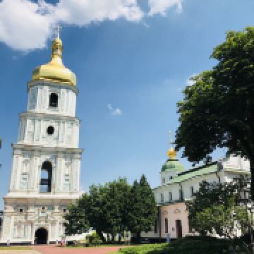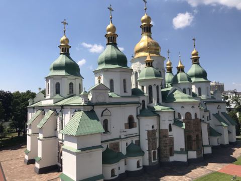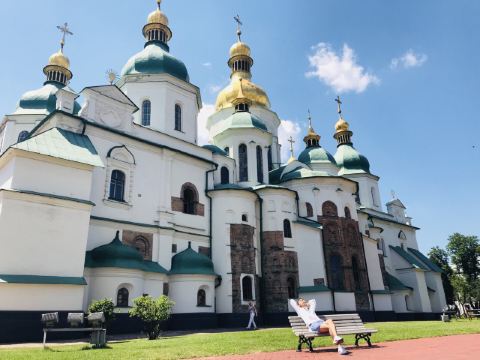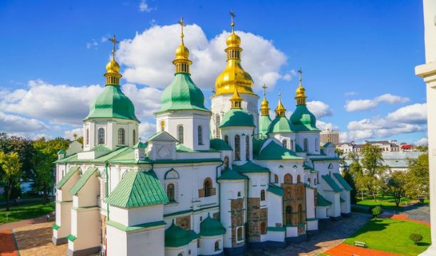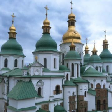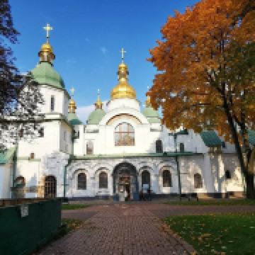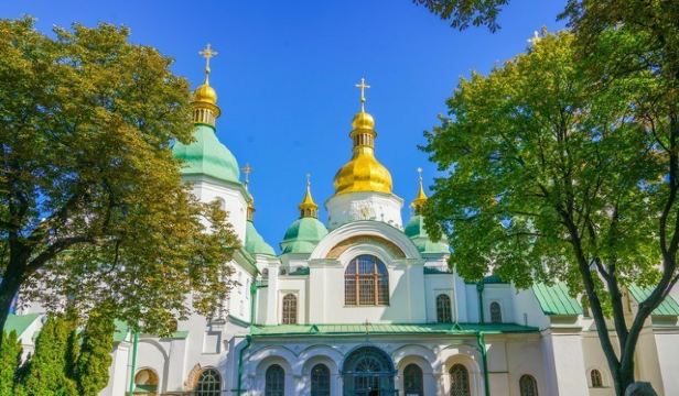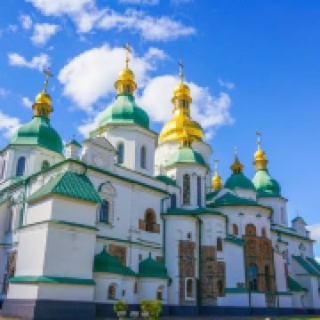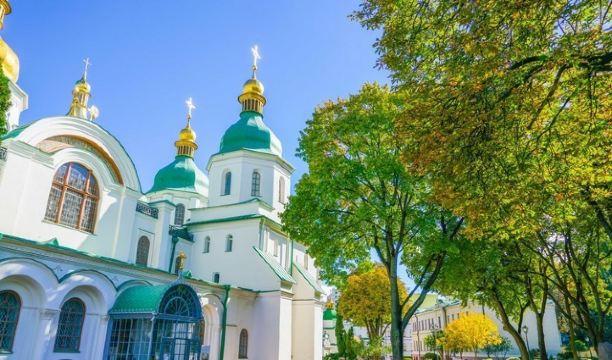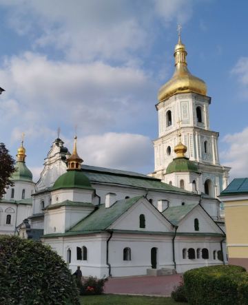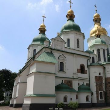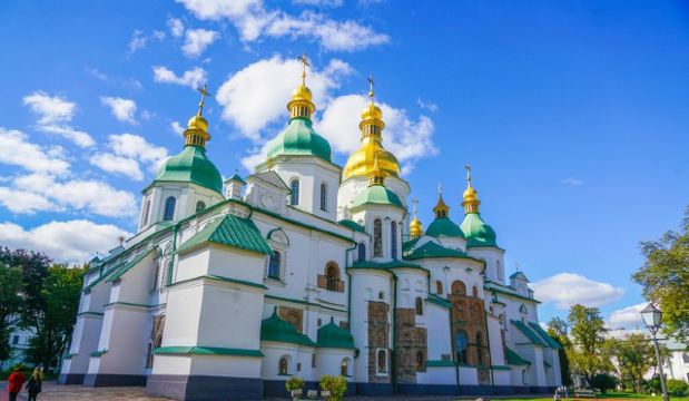 11世纪的圣索菲亚教堂是基辅非常有名的东正教大教堂,它的设计可与君士坦丁堡的圣·索菲娅教堂媲美。大教堂采用巴洛克式建筑风格,范围包括金绿儿色顶的大教堂,钟楼和一座修道院,整片建筑群于1990年被列入世界遗产名录。