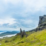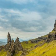 老人峰坐落在苏格兰北端的岛屿上, Trotternish 的山脚下,号称是整个天空岛(Isle of Skye)较为壮观的景色。山上森林覆盖,遮天蔽日,只有山峰处矗立着几座石柱,非常壮观。