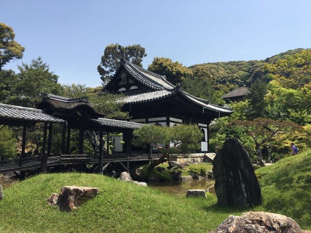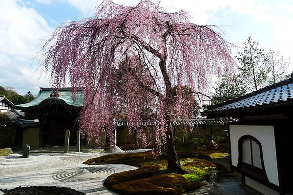高台寺依山而建,规模宏大,曾遭火灾焚毁,现仅存开山堂等建筑。寺内有伞亭、时雨亭茶室、灵屋、望月台等名胜景观。到了春季和秋季,高台寺的樱花和红叶的夜间灯饰观赏,是京都绝景之一。
