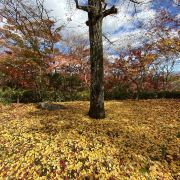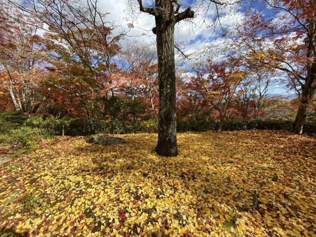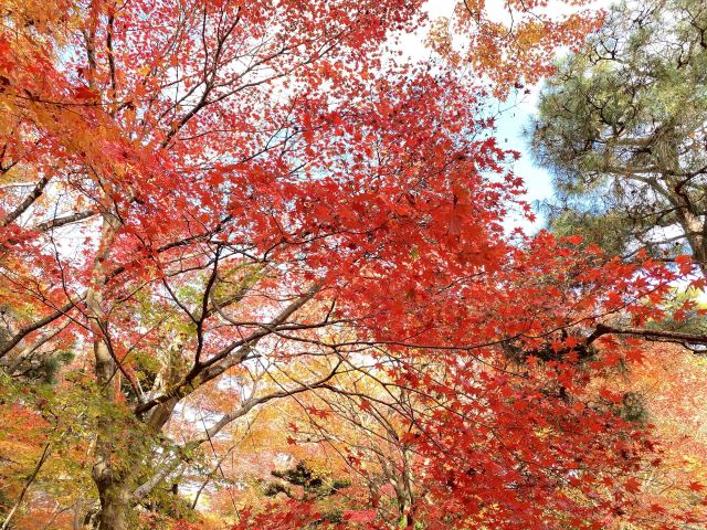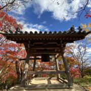 一路拾级而上,红橙黄绿各色林木环绕,赏心悦目。红枫美得醉人,却也和其他林木相互印衬得相得益彰。到达有名的多宝塔之后,继续向上行。到达了适合站高望远的观景之处。零星的几个游客都开始停下脚步,被眼前的美景所震撼。远处夕阳余晖映出连绵山脉温柔的轮廓,山下星星点点布满日式的房屋,眼前红枫、绿松、黄叶,目不暇接。我贪婪地欣赏着这醉人的美景,用力呼吸着大自然的清新,努力把这些美好深深印在脑海里,铭记。