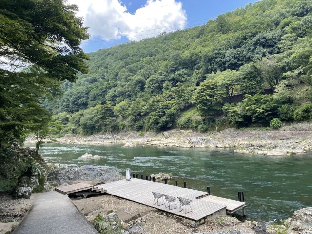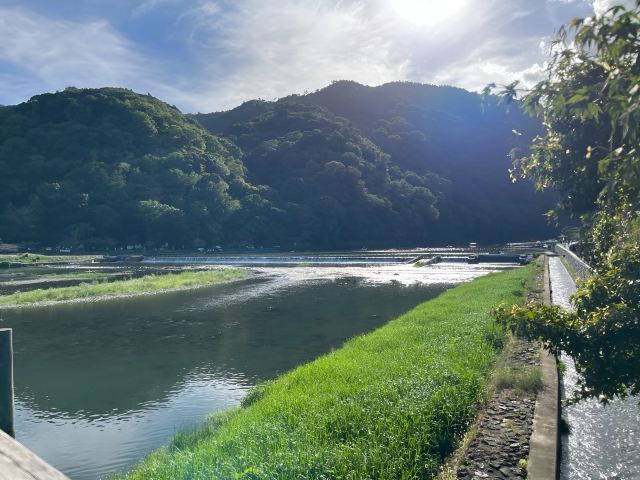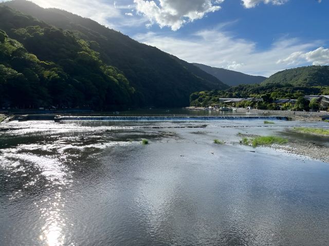 以桥为分界,上流称为大堰川,下流则称桂川,是昔日平安都城的贵族们乘舟戏水、欣赏枫叶的热门景点,细致优雅的水流至今不断。此外,享誉全日本、流传千年的捕鱼技巧“鹈饲捕鱼”也在该桥附近举行,是每年7月至9月中旬的热门表演。在桥上还可赏岚山四季美景。