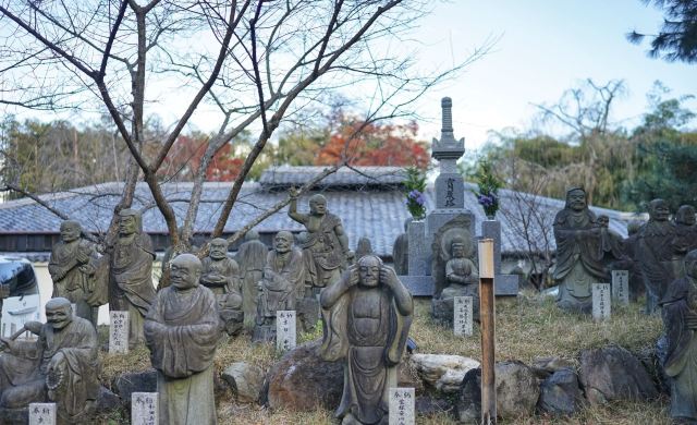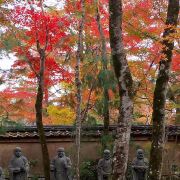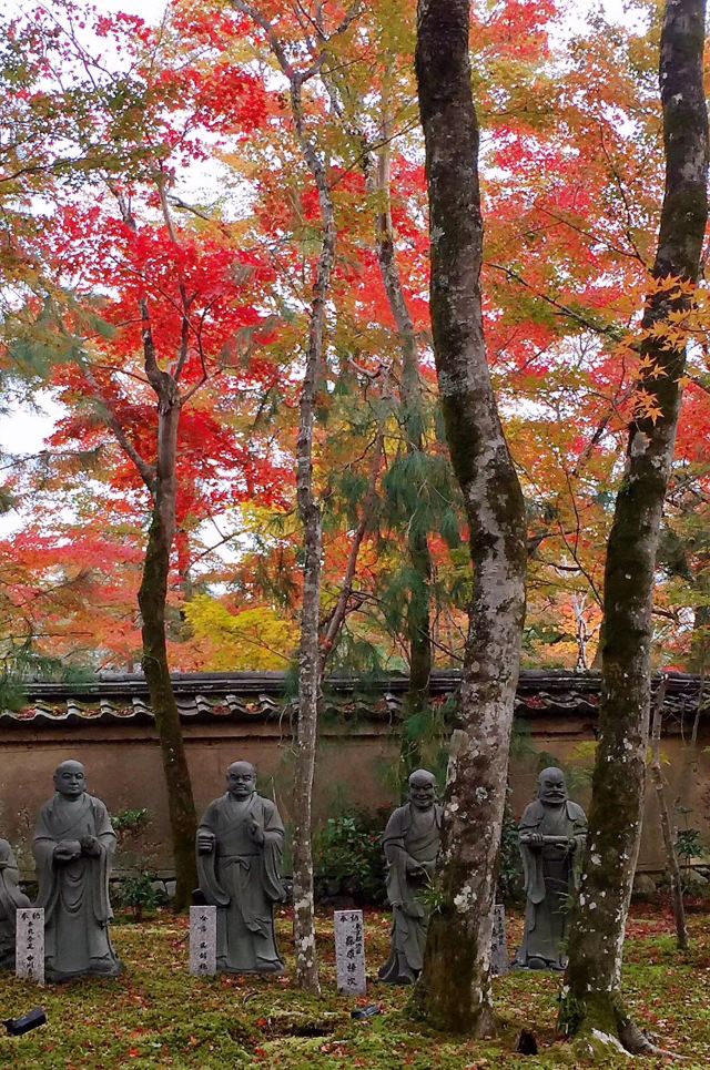 宝严院在秋季亦开放夜赏,夜晚在灯光的映照下应该呈现出另一种瑰丽的色彩,惊艳迷人。宝严院外正对着有一片罗汉林,石雕的罗汉千变万化,十分有趣,也不容错过。