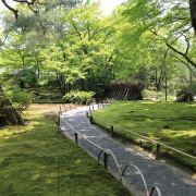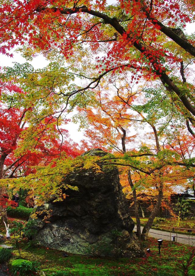 宝严院,规模不大,却有个备受尊崇的山水庭园狮子吼庭。狮吼之庭由曾多次出使中国的禅师策彦周良所修建,漫步在庭院之中,发现身边的景致始终被一条贯穿寺院的人造小河环绕,这就是标准的回游式山水庭园,狮子岩如庭院的守护者,蹲坐在庭院一隅,巨石突出的一端,果真就像蹲坐在高处,俯瞰众生的雄狮英姿。