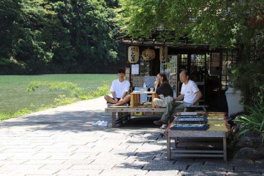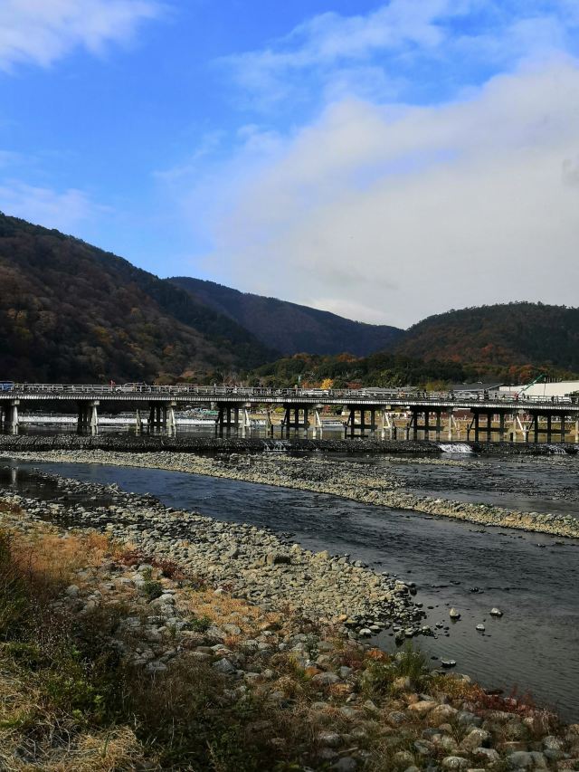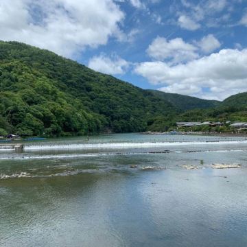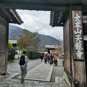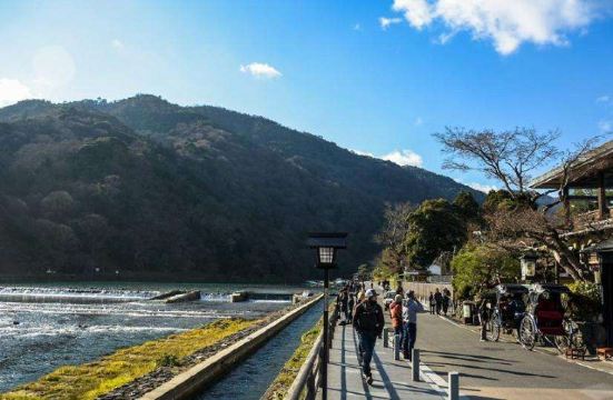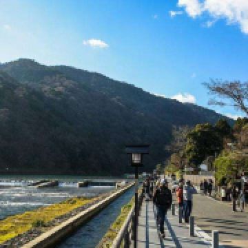 另外、在对岸的山边和桂川的美丽的自然中经常会看到悠然自得的垂钓人。 位于渡月桥下流左岸的临川寺地区,以古老的红松为主体,樱花树和枫树交印其中的林荫路,形成了雅致的风景。