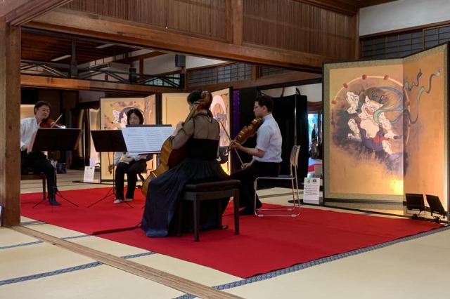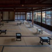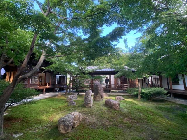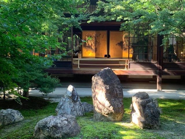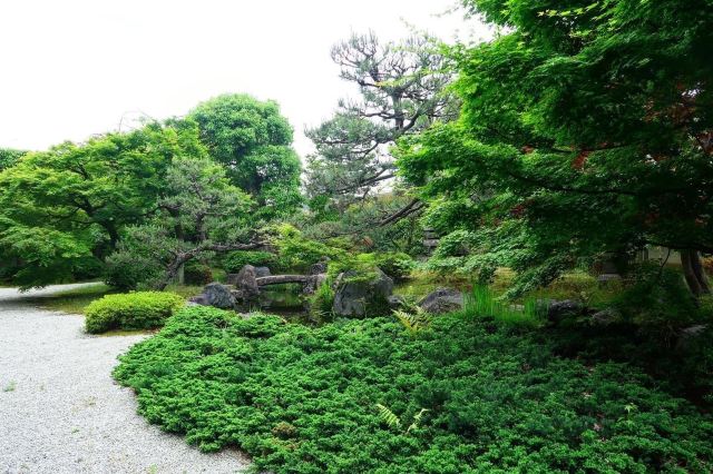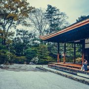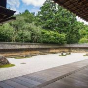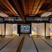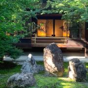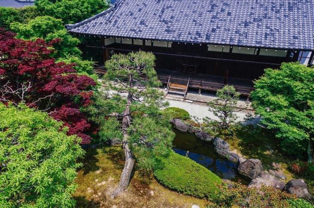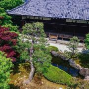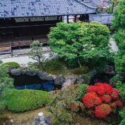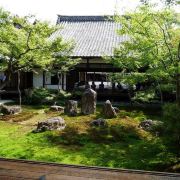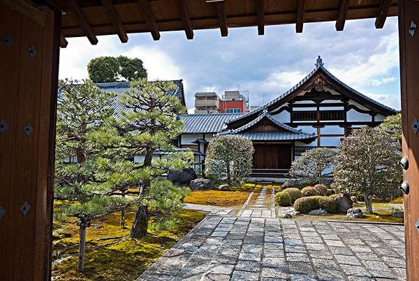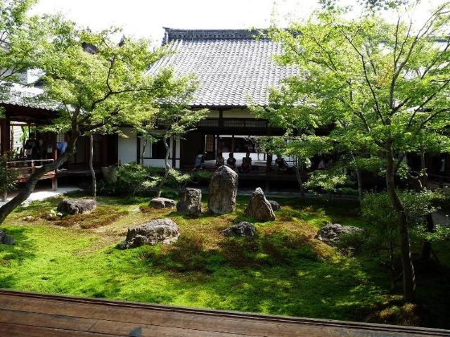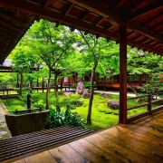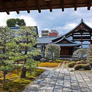 建仁寺是喧闹的祇园生活中一处僻静的地方。大殿屋顶的“双龙图”是寺院的珍宝。寺院内著名的“潮声花园”位于大殿的后方,是简洁而典型的禅宗花园。花园中摆放着3块石头,代表着佛祖和两位禅僧。另有一块平躺的石头用于冥想,四周种满红枫倍添花园秀美的景致。