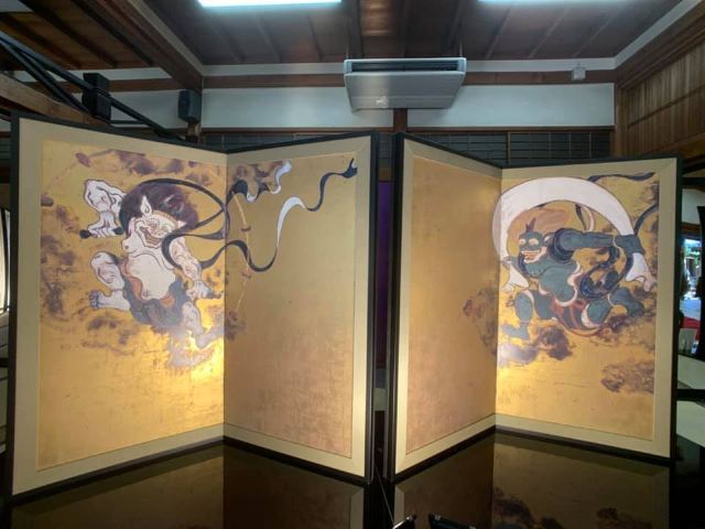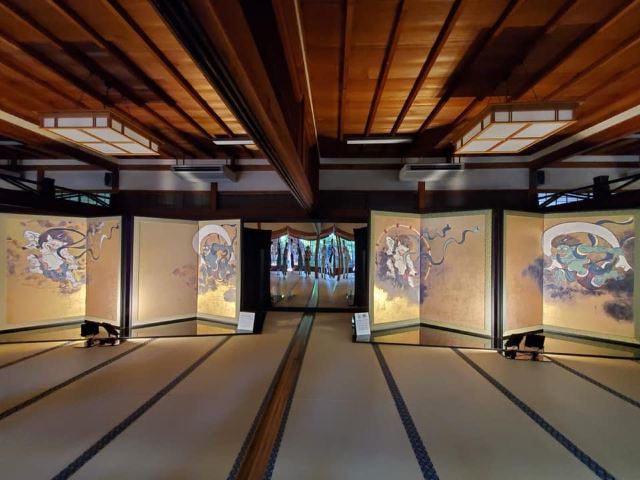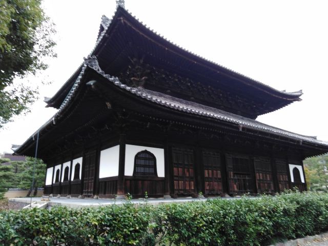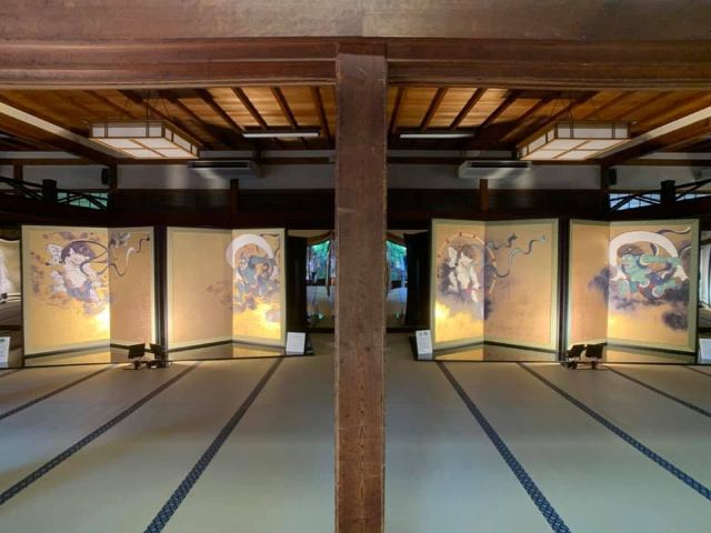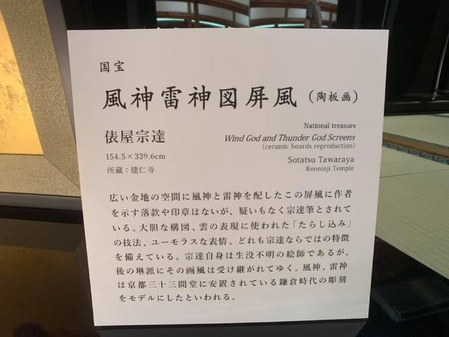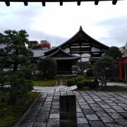 这是将茶引入日本的荣西禅师于公元1202年创建的京都第一座禅寺。寺内有表屋钟达的代表作品风神雷神图。寺内建筑众多,有15座寺庙。每年春季在荣西禅师的诞辰日,都举办大茶会,表演禅宗古传茶法。