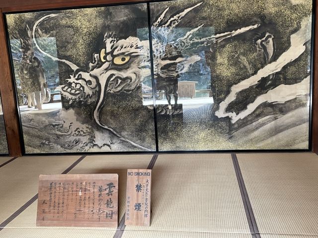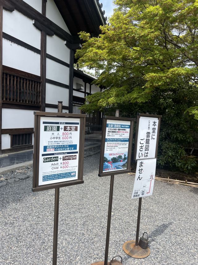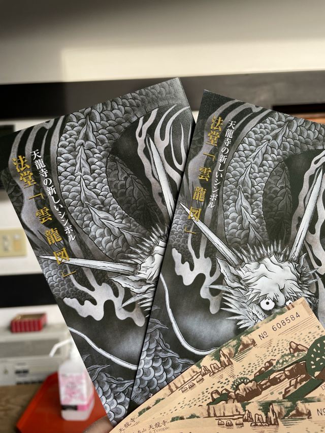 大方丈和曹源池之间是一片整齐的枯山水,可以在这里细细感受日式庭院的美。库里是大方丈的入口,在这里记得欣赏一幅达摩图,是天龙寺的招牌。一、二代云龙图是大方丈的看点,只有遇到特别公开的时候才能一睹真容。法堂里有第三代云龙图,也只会在特别开放时候才能进入参观。