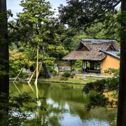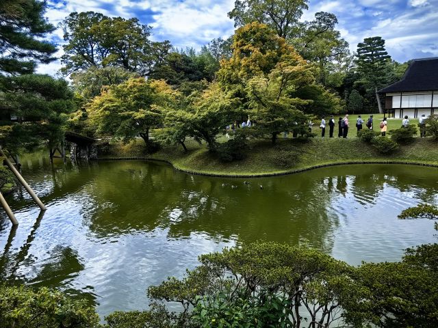 桂离宫以庭园和日本式建筑而闻名于世。它由智仁亲王于1615年着手建造,经过35年建成,面积为56000平方米。宫殿以古书院、中书院、新御殿为主,池子周围建有书院,茶亭,巧妙地融合了庭园和建筑的结构,融入了数寄屋风的建筑风格。从选址到景观规划,都追求简朴而接近自然,“日本之美”即以桂离宫为代表。