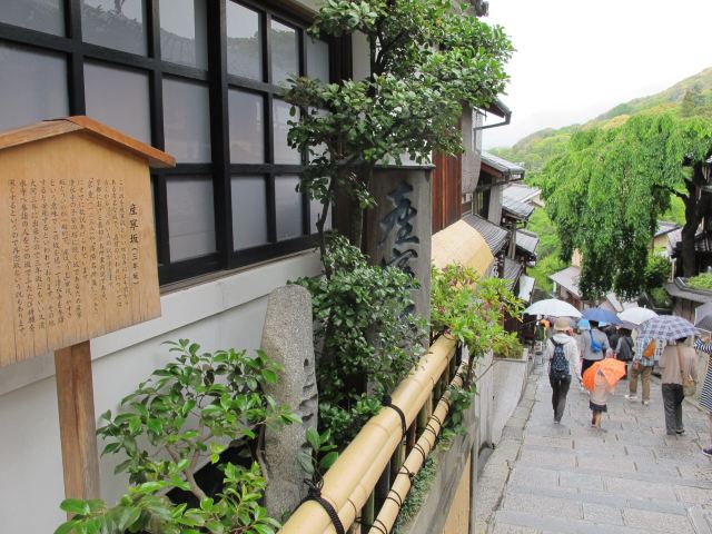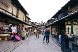 清水坂是清水寺门前的一条石板街,连接东大路通街道至清水寺,这条街车辆不得通行,道路两侧有很多出售清水烧瓷器、京烧点心的店铺,也少不了美味的京都小吃店,清水坂无疑成为了买纪念品、品京都小吃的首选之地。