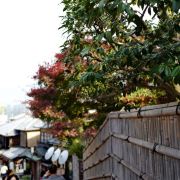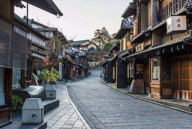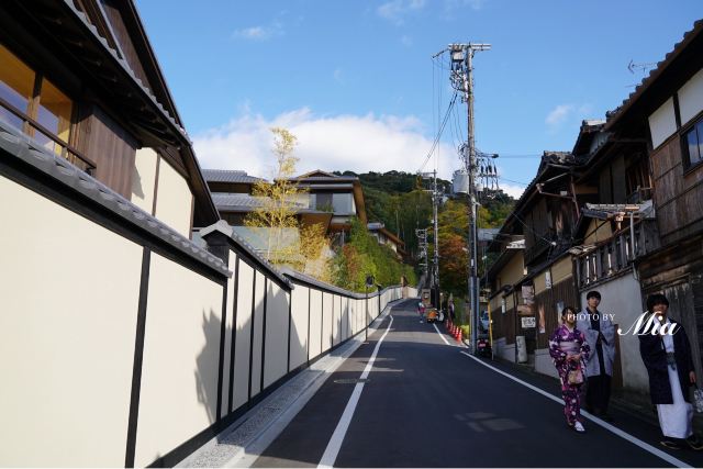 二年坂从北面的高台寺往南延伸至三年坂,长约200米。走在曲径通幽的石板坡道上,一路连绵着保留了红壳格子和虫笼窗式的古老町家建筑,极具韵味。