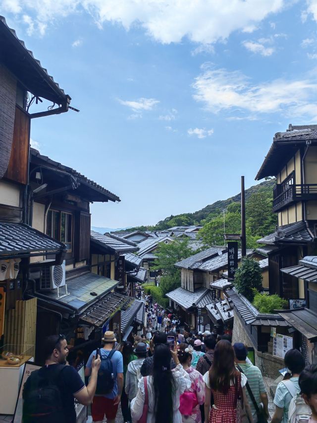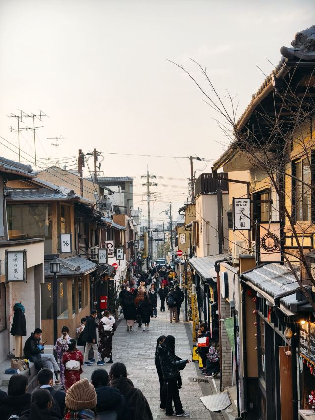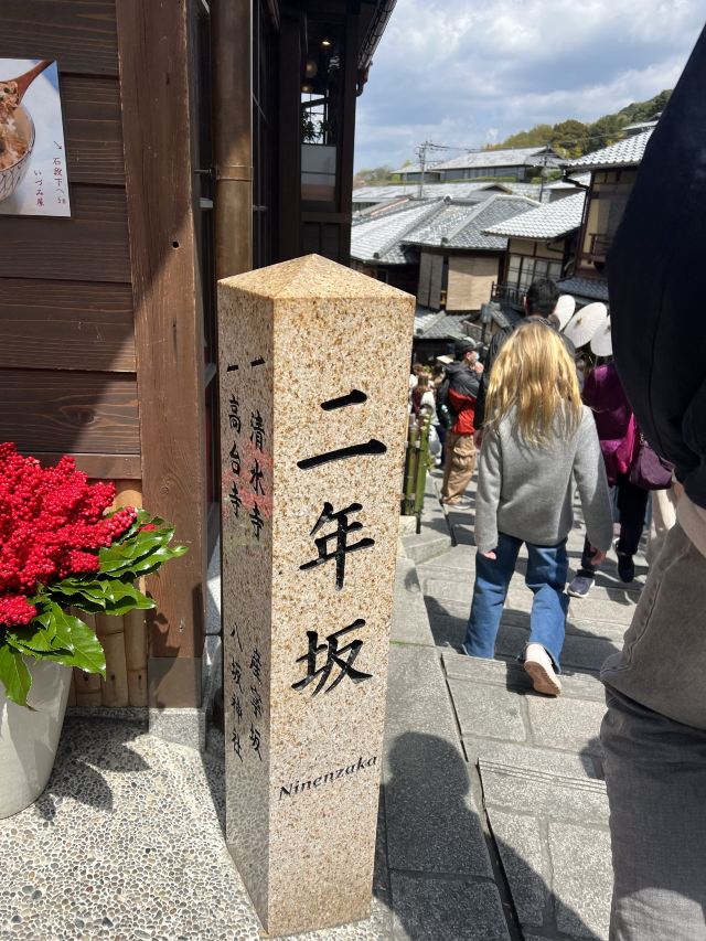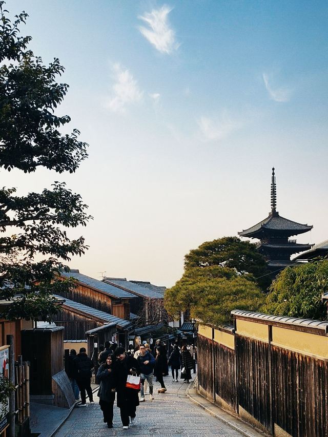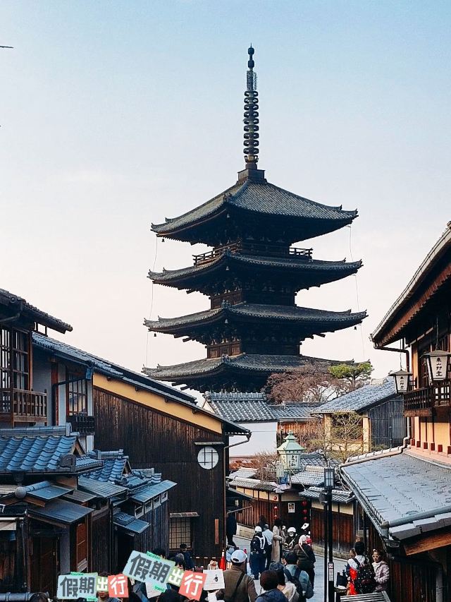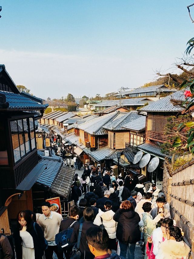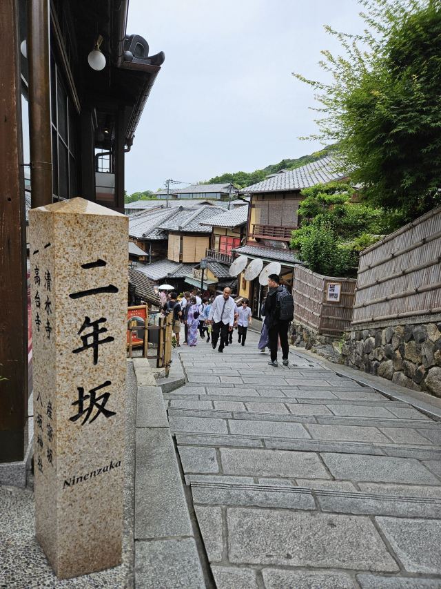顺着二年坂走到底就到了三年坂,一直通往清水坂。由于经常有产妇为了去清水寺祈求顺利生产,再加上日语中的生产平安“产宁”与“三年”发音接近,所以三年坂也被称为产宁坂。三年坂的石阶比较陡,无论是漫步观景还是找角度拍照都别有一番韵味。