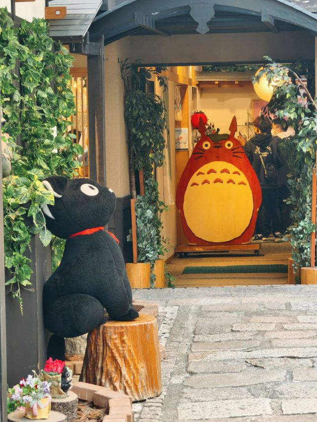 在二年坂的一条小巷子里有一家吉卜力主题纪念品店“橡子之森”,当你看到一个小地藏菩萨的时候可不要错过了,商店就在它指引的巷子中。走到店铺前会看到很多手办和海报,你还可以和门口的大龙猫合个影。