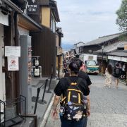 4分 满意二月末去的,那天天气不太好,阴天,灰蒙蒙的,还有点冷,不过古香古色的日本建筑还是让人觉得值得一逛。这种特色街区其实最适合步行慢慢溜达,可是我们是带着两个孩子,其中一个才三岁,光溜达孩子呆不住,加上还有点冷,后来干脆找了人力车转了一圈儿。我们四口人,两辆车,半个多小时吧没记错的话,一共1400元。拉车小伙子服务态度非常之好,特别热情殷勤,到了打卡地主动给你拍照,车上座位上也放着暖宝宝,还有盖毯。所以虽然价格贵,但是无奈自己懒,也觉得物有所值了。本来想给女儿租个和服拍一些美美的照片,结果这个天气温度也让人放弃想法了……下次再来京都一定挑个好天气,慢慢逛一下。