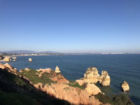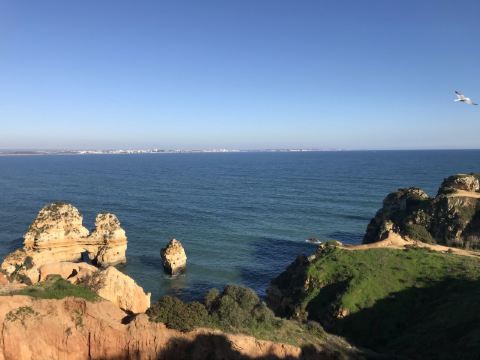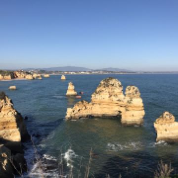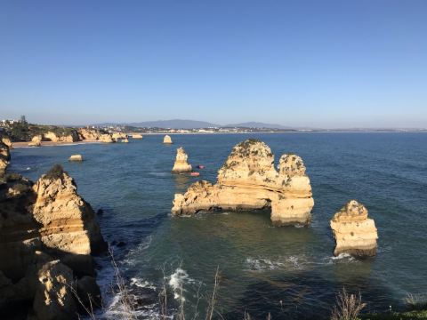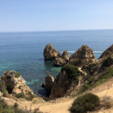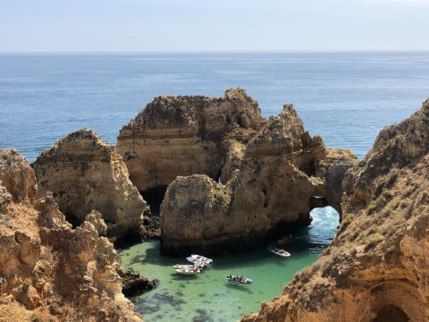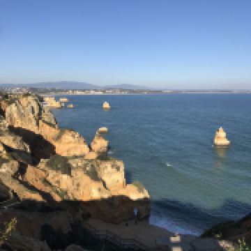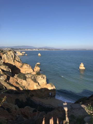 Praia do Camilo 是葡萄牙阿尔加维地区拉各斯迷人的海滩之一,以其金色沙滩、清澈碧绿的海水和壮观的岩石景观而闻名。要抵达这片隐秘的海湾,游客需沿着木质阶梯蜿蜒而下,途中可欣赏到壮丽的海岸线全景。海滩被高耸的橙红色石灰岩悬崖环绕,形成天然屏障,使海水平静、清澈,非常适合游泳和浮潜。涨潮时,沙滩面积会减少,但通过一条手工挖掘的隧道,游客仍可通往另一侧的海滩区域,探索更多隐秘角落。海滩设施有限,仅有一家位于悬崖上的餐厅 O Camilo,提供新鲜的海鲜美食和壮观的海景。此外,海滩附近设有通往 Ponta da Piedade 的木栈道,沿途可欣赏到壮观的岩石拱门和海蚀洞,是摄影爱好者的天堂。无论是寻求宁静的冬日漫步,还是夏日的阳光浴,这里都是探索阿尔加维自然美景的理想之地。