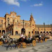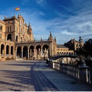 广场周围,阿拉伯与西班牙风格混然一体的塞维利亚风格建筑,鳞次栉比,典雅端庄。