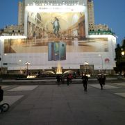 年轻的西班牙广场,建于1925-1957年;位于格兰大道西端,马德里王宫北侧;呈长方形,占地面积3万余平方米。
