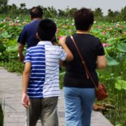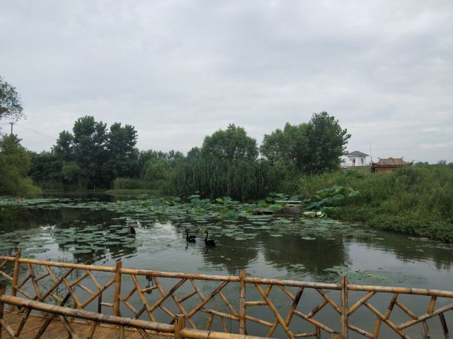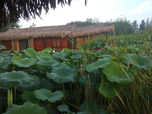 景点:首先坐船游览了千亩荷塘,芦苇已经长得很高了,荷叶刚刚长出,导游说到了六月份就能看到荷花了,还能看到一大片红莲,野鸭也很多。