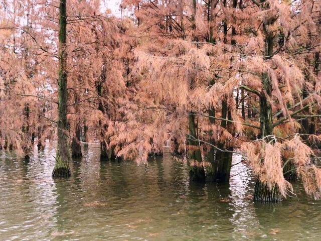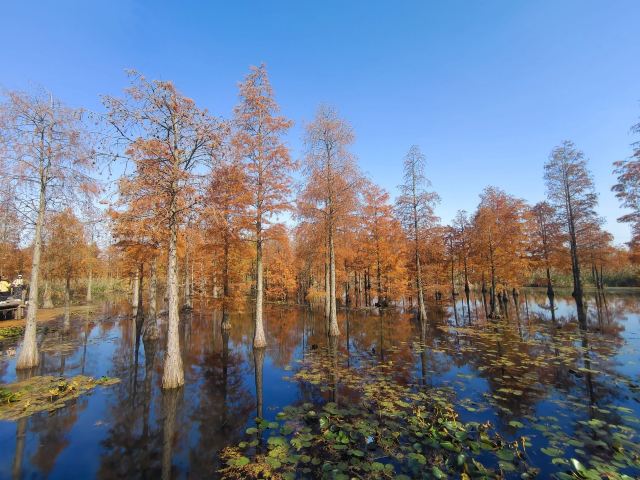 4分 满意全部手机直出原图没加滤镜,确实是到了一年池杉树最黄金的观赏时候了,11.30周六天气晴朗温度适宜天空湛蓝美的不要不要滴