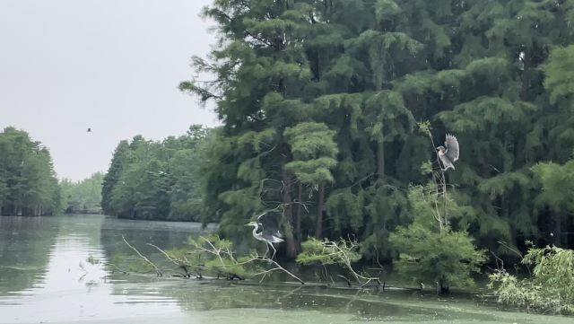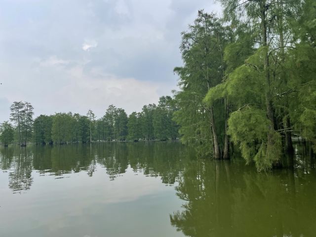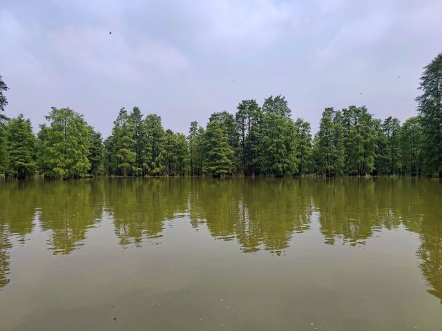 最后乘船去了他们的核心区大池杉林,简直是一大片水上森林,鹭鸟在树上密密麻麻,听导游说这个时候正是它们的繁殖季,所以才会这么多。