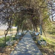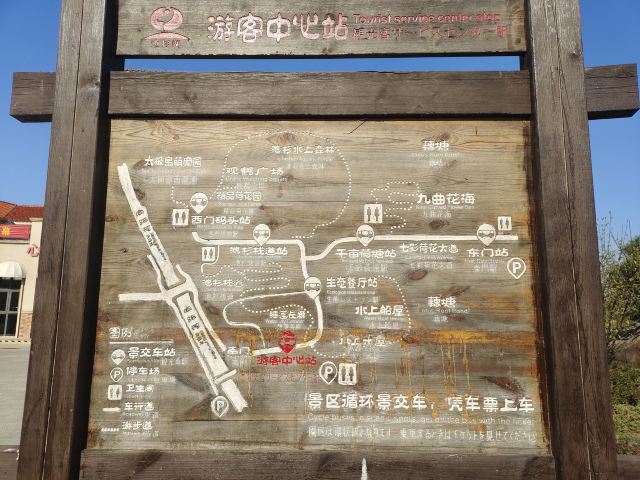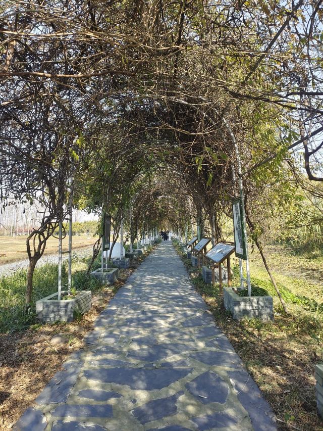 早上九点从南京市区驱车大概一个多小时到池杉湖门口,网上购票(门票+船)是在东门兑换纸质票,园区停车场都停满了,我们就沿着路边的田间路停着,要停好远好远