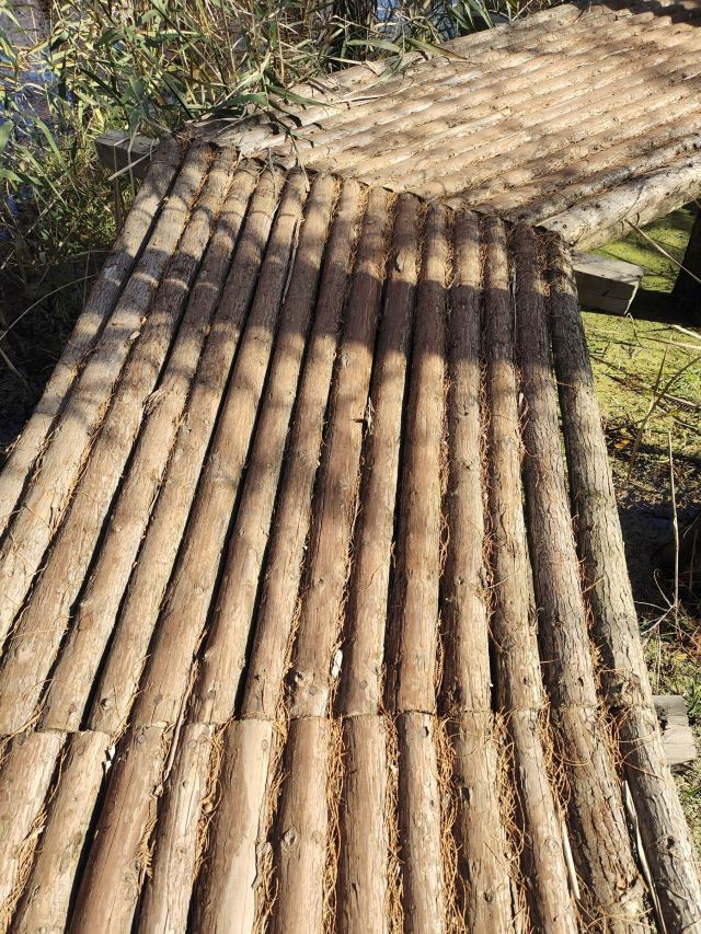 林间栈道分叉处较为平坦的栈道是走向乘车点的,圆整木的栈道主要是拍照观赏