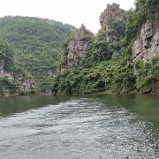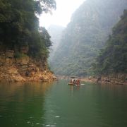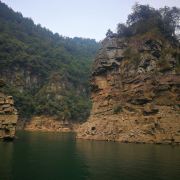 微信小程序金秀圣堂湖景区位于圣堂山风景名胜区西北面,距县城金秀镇38公里。是以老虎潭峡谷为依托打造起来的生态旅游区。旅游区以老虎潭峡谷为主轴、以平娇为中心,全长约16公里。融赏山乐水、养生度假于一身,是个使人激情与柔情共生的浪漫处所。这里是美丽的,美得令人陶醉,美得让人流连忘返,美得使人不禁拍手赞叹。满目的原生态景色,处处山清水秀峰奇。一年四季,河水缓缓的流淌,从不间断。清澈得像块水晶,碧绿得如同翡翠。春末,夏天,初秋是它迷人的时节。清晨,太阳醒来,湖水开始梳妆打扮,倘若置身其间,有如在画中之感。河水悠悠,游鱼嬉戏,山林苍翠,鸟啼声声;那淡淡的晨雾也凑热闹似的,朦朦胧胧的掩映着这山这水,充满了活力。如孩童在山间逗趣,姑娘在林间扑蝶。晨风击起的朵朵水花,极像瑶家姑娘挑绣的锦缎;和风吹拂翩翩起舞的绿树,秀气中透出奇巧,奇巧中透出温柔,就像温柔的瑶家姑娘挑绣满山柔软的瑶锦,勾勒出一幅幅趣味盎然的风景画。生态旅游区中心---平娇,是块约24700平方米的谷地,四面群山环绕、奇峰矗立、冬暖夏凉,平均气温18℃,这里建有游客服务中心、天然泉水游泳池、水上人家、养生度假区、户外扩展运动区等设施。久居都市,来到这里,会有一种穿越时空,跨入另一方天地的感觉。这里空气极为清新,略带几分滋润,能使旅途的疲劳很快消失得无影无踪。初到这里,耳畔静得有些不习惯,因为只有习习的山风和阵阵的蜂鸣声。中心区上辟有约5公里的激情漂流河段,河床坡度不大,河道弯曲、河水萦回,两岸高处群山簇拥,低处瑶寨、梯田纵横阡陌的构成了河谷田园景观。乘坐橡皮舟漂流,山随水转,拐过一弯又一弯,两岸之山伴着水流辗转腾挪,俯昂伸屈,水摇山动,水弯山曲,水澈山跳。既有行云流水曲,又有田园恋歌调,山韵伴着水调唱,把深沉的恋歌唱给绿树、青山、蓝天、白云,逗得两岸青山、一河倒映,一路唱着舞着前行,舞出自己无比灵秀的神韵。令人意随轻风,心逐流云,激情漂流和冲击,激起青春的律动,生命欢快的乐趣。中心区西南面的红冲峡谷下半部是勇士漂流的好去处,3600米的溪流坡降289米。山涧水流湍急多滩,高大的峭崖直插水面,两岸紧相靠拢,不即不离。四周绿树葱茏,遮天蔽日,古树古藤特别多,树缠藤、藤缠树的野趣盎然。山谷回环,使人看不见水从何处流来,也不知道流往哪里去。溪水很清很凉,水底下斑驳陆离的彩石清晰可见。奔腾不息的溪水,在跌宕起伏的峡谷中谱写出一支支清脆悦耳,又看得见摸得着的清溪流韵,还有一道道急滩和一个个水潭。乘橡皮舟沿山溪漂流而下,可饱览山水自然美色,也可深深体验到急水行舟的险象。然而整个勇士漂流有惊无险,只有巨大的魅力和刺激令人叹服而已。勇士漂流是当今世界上的热门旅游活动,来吧,朋友。让我们乘着橡皮舟,在上下抛跌、左右猛拐、狂呼大笑、全身湿透的勇士漂流中去体验惊险和刺激吧!中心区的下游是2005年建成的下六甲电站水库静水区,该库区正常水位297.5米,相应库容320万立方米,正常蓄水位水面面积0.96平方公里。整个库区水面宽阔,水质纯净、水流平缓、水光潋滟,水色澄碧。四周奇峰矗立,怪石嶙峋、绿树掩映、古藤悬空,一派湖光隘峡秀水深谷的美景。蔚蓝的天幕笼罩在峡谷中,撒下一团团明晃晃的白光,形成一条狭长的银河,银河两边仍然是碧水,奇峰倒影参差错落,历历在目。银河碧水,既秋毫无犯,又交相辉映,为景区增添了无限神韵。所以在这里开辟了游程8公里的平湖静水休闲游。随着游艇缓缓前行,不但“将军岩”、“宝塔峰”、“众亲迎宾”、“八仙拜寿”、“猴王会客”等等奇景尽收眼底,而且还能领略到艇移景换的奇妙。湖水更是波澜不惊,纤尘不染,天空中没有尘烟侵扰,水面上没有都市的喧闹,只有游艇发动机“突突”的轰鸣和游客们“哈哈”的欢笑声,衬托着四周的空旷阒寂和湖水的温柔娴静,令人深深的感悟到“蝉噪林逾静,鸟鸣山更幽”的深邃意境。偶有山风拂过,把一峡清水吹皱,我们才感觉到她血脉的流淌和心脏的跳动。
