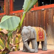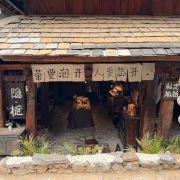 糯干古寨距离翁基古寨大约9公里石头路,感觉就是翻过了一座山,在山的背后是糯干。这里的商业气息比翁基是要低一些,当然,茶店还是一家连一家的。糯干是傣族村寨,但单从建筑上看不出和布朗族的翁基有太大的区别。除了屋脊上不是布朗族一芽两叶的装饰,而是牛角的装饰,可以看出这是傣族的村落。但最明显的还是村里寺庙的风格。