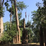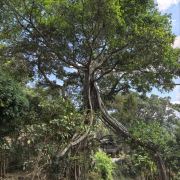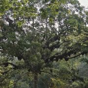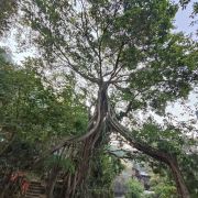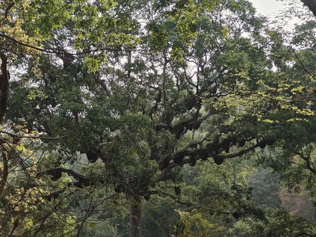 第一次我们一直走到蜂王树,一睹蜂王树的尊容,好高好大,枝叶茂盛,根系庞大错综复杂,树干上有大大小小70多个蜂巢,很是震撼,布朗族将其视为神树。