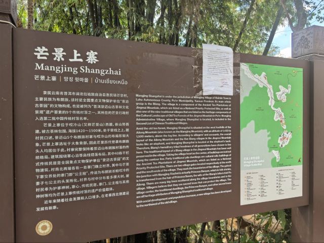 芒景村是坐落在澜沧拉祜族自治县惠民哈尼族乡南边的一个布朗族村落,位于云南省澜沧县有名的“景迈千年万亩古茶园”核心地带,距离乡政府所在地29公里,到乡政府道路为弹石路,交通便利,距离县79公里。东邻西双版纳勐海县勐满镇,南面和西面与糯福乡相邻,北邻景迈村。