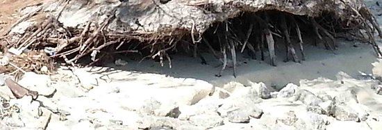 湿米岛是有分两个区域的,靠近海滩的区域是公共区域,游客可以任意游玩,但里面有绳子栏的地方是私人区域,游客不能任意进出。因为导游认识岛主,所以我们是可以进去这个区域里休息游玩。在高脚屋的下面就有桌子和凳子给我们休息。