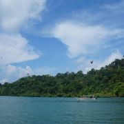 Pulau Beras Basah, is located about 25 kilometres from Kuah. It has sandy beaches, palm trees and clear shallow water. People who are interested in swimming can go with extra dresses. If not interested in swimming, can take a stroll on the beach. As Monkeys are there in the island we should be careful while carrying the bags etc. It is possible that they may try to grab them in search of food. As there is no facility to stay over there, we can spend about an hour or so only in the island. As we have visited via island-hopping tour we were there only for an hour. An interesting place to visit!