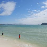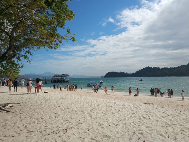 湿米岛又叫白沙岛,这里有洁白的沙滩,海水也较为清澈,可以在海水里自由畅游。在湿米岛上除了游客还有很多猴子,而且还会偷东西吃。它们都是成群结队的,翻找袋子,垃圾,这里不是要防小偷,而是要防猴子