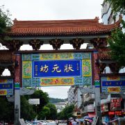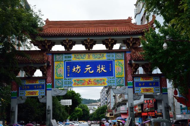 状元坊位于阆中古城,是阆中的标致性建筑。状元坊四柱三门,高约20多米,宽10多米,是为了纪念古阆州的4位科举状元而建。所以两侧的横梁上有四位状元的金色名字,分别是尹枢、尹极、陈尧叟、陈尧咨。