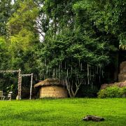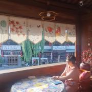 ②走进小镇,右侧是一片参天大树,然后是连片的竹林。树林深处,竹林之间,隐藏着几十个温泉泡池。