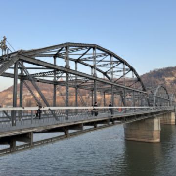 这座铁桥修建于清朝末年,是当时黄河上较早的一座常年通行桥,铁桥当年由德国人建设施工,所有的材料也都由德国运来。