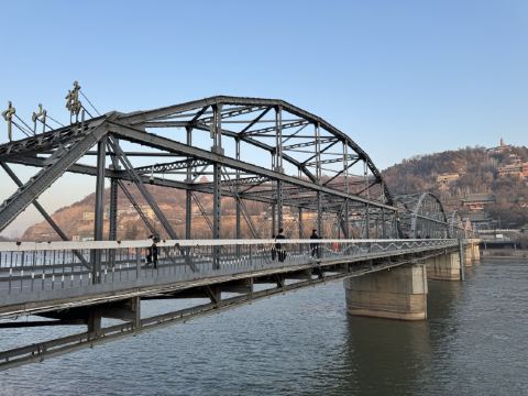 走上铁桥,下面便是安静流淌的黄河,而两岸的风景也很不错。铁桥南侧是兰州环境较好的街区滨河路,而北边则是有名的白塔山公园,山上有很多建筑和古迹,登山俯瞰拍摄铁桥和兰州全景更是非常漂亮。
