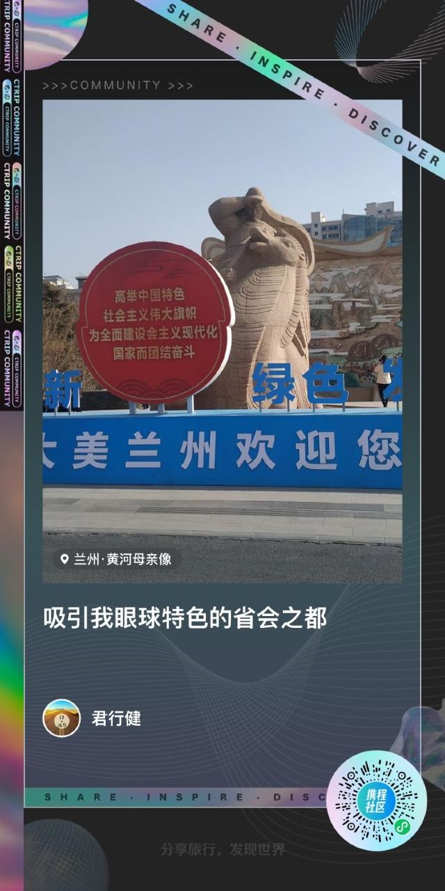 4分 满意蘭州市中心,黃河堤岸邊的一座塑像,距離中山橋很近。建築年代不詳,這也是遊客必打卡的去處之一,我們也去打了卡。