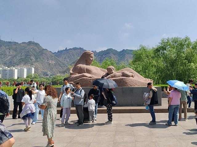 5分 超棒黄河母亲像就在黄河边上,一位母亲半躺着,还抱着一位小孩,小孩趴着的姿势,周围很多游客围着拍照打卡,应该是比较热门的打卡点了。夏天晴天比较晒,最好防晒霜加防晒伞。晚上周围景色更美些。
