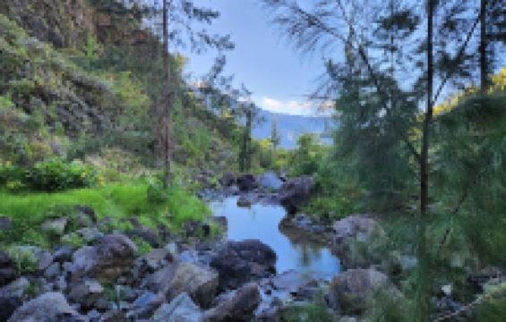 Début du sentier bassin et cascade Ferdinand - Fouquet