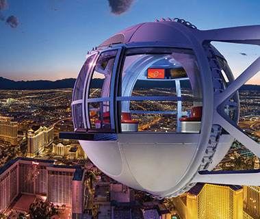 • 乘坐北美大观景轮,翱翔在拉斯维加斯大道中心上方 550 英尺的高度。